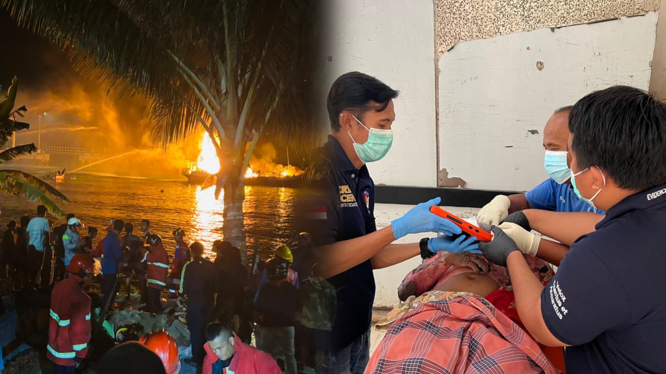Sekitar tengah malam, ABK mencoba menyalakan kembali mesin. Upaya itu justru memicu ledakan keras yang langsung diikuti kebakaran hebat. Api dengan cepat melahap badan kapal, memaksa awaknya berusaha menyelamatkan diri.